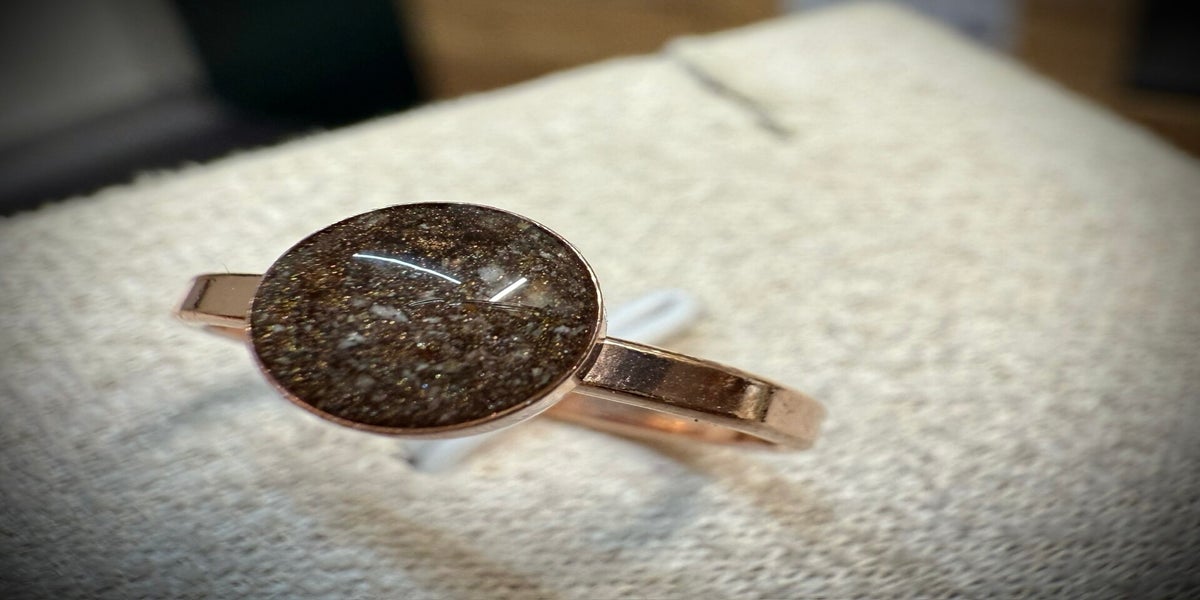 Auf der Suche nach einem Schmuckstück, welches ich immer bei mir tragen kann und niemals ablegen muss, machte ich meinen ersten Ring mit ihrer Asche. Das Gefühl, ein Teil von ihr bei mir zu tragen, half mir bei meiner Trauer und so entstand diese kleine, liebevolle Kreativwerkstatt in der Hoffnung auch anderen bei ihrer Trauer helfen zu können.